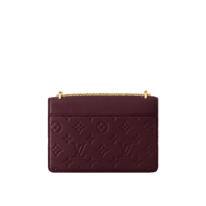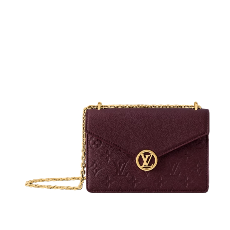 This elegant Wallet On Chain Rosy offers a timeless Burgundy colorway that complements any look it is paired with. Made from the House’s signature Monogram Empreinte leather, it is accented with a gold-toned LV Circle and a sleek chain for shoulder carry. The chic design is sized to fit everyday essentials, and includes three slots to keep credit cards secure.